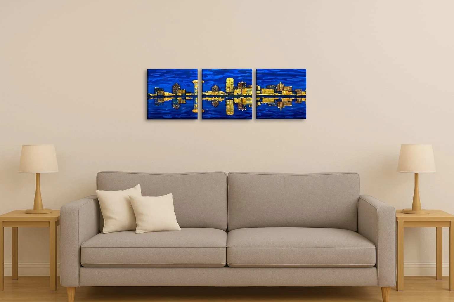 Shop › Dallas Skyline Royal & Gold Canvas Artwork (4 Size Options) Image 1 of 2 Image 2 of 2 Dallas Skyline Royal & Gold Canvas Artwork (4 Size Options) from $84.99 Canvas Size: Select Canvas Size 12x12 3 Panel 18x24 1 Panel 24x36 1 Panel 18x24 3 Panel Add To Cart Added!