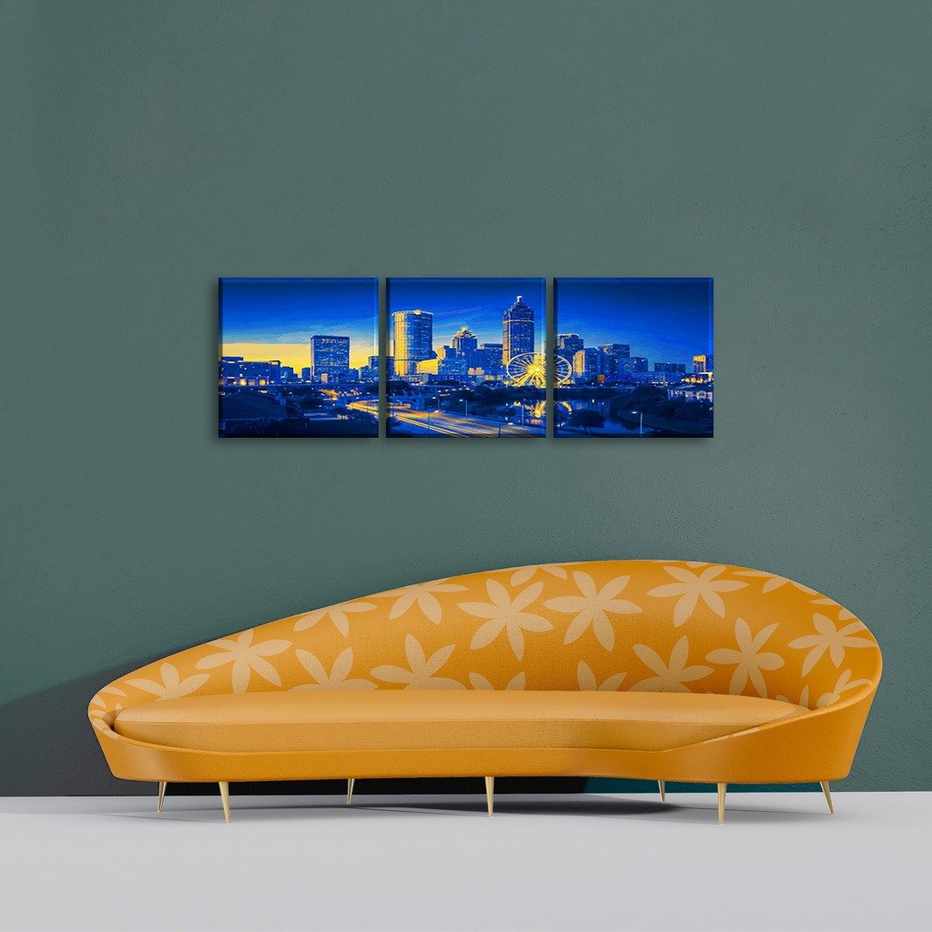 Shop › Atlanta Skyline Royal & Gold Canvas Artwork (4 Size Options) Image 1 of 2 Image 2 of 2 Atlanta Skyline Royal & Gold Canvas Artwork (4 Size Options) from $84.99 Canvas Size: Select Canvas Size 12x12 3 Panel 18x24 1 Panel 24x36 1 Panel 18x24 3 Panel Add To Cart Added!
