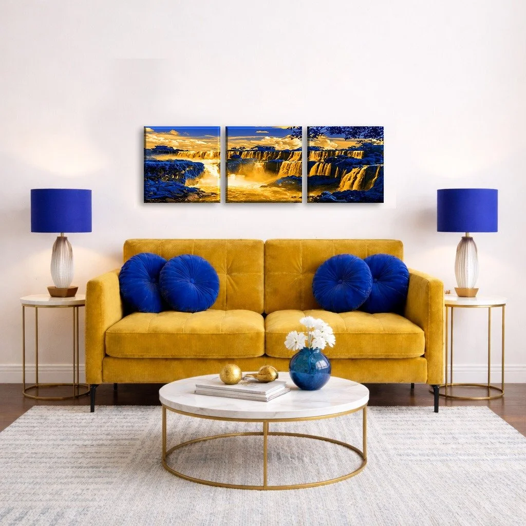 Shop › As the Water Falls Royal & Gold Canvas Artwork (4 Size Options) Image 1 of 4 Image 2 of 4 Image 3 of 4 Image 4 of 4 As the Water Falls Royal & Gold Canvas Artwork (4 Size Options) from $84.99 Canvas Size: Select Canvas Size 12x12 3 Panel 18x24 1 Panel 24x36 1 Panel 18x24 3 Panels Add To Cart Added!